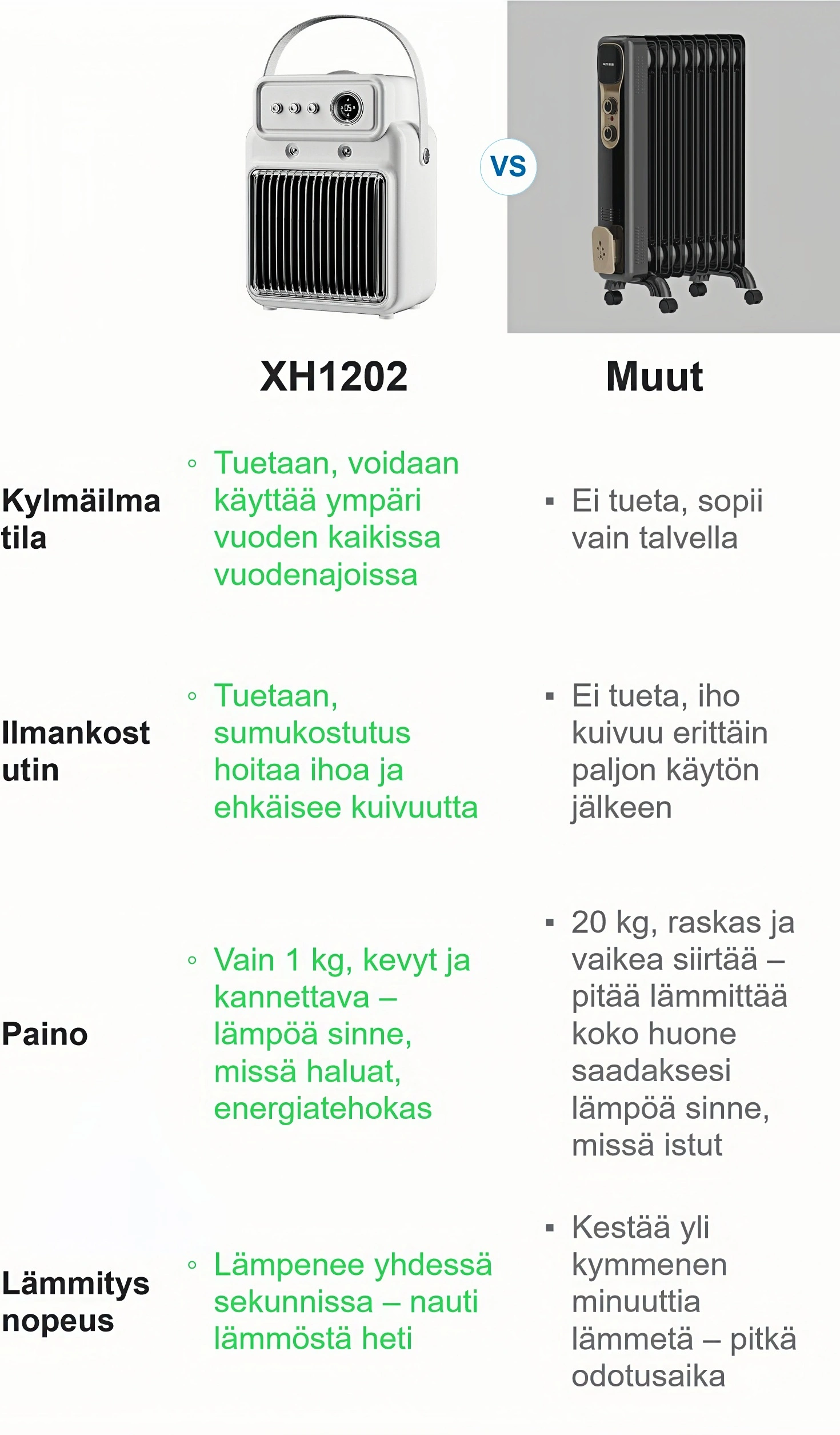 Ilmalämmitin ja ilmankostutin XH1202